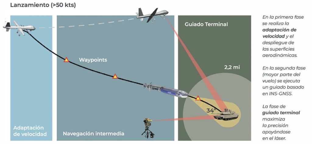 - Capacidad de guiado terminal: SALS con FoV ± 77º y alcance 2 mi